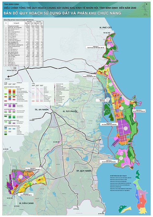 – Phân khu 02 – Khu đô thị cửa ngõ Cát Tiến: Là khu đô thị cửa ngõ phía Bắc, phát triển đô thị, du lịch – dịch vụ với mật độ trung bình; khai thác tiềm năng phát triển năng lượng tái tạo; bảo tồn vành đai thiên nhiên ngăn gió bão biển.